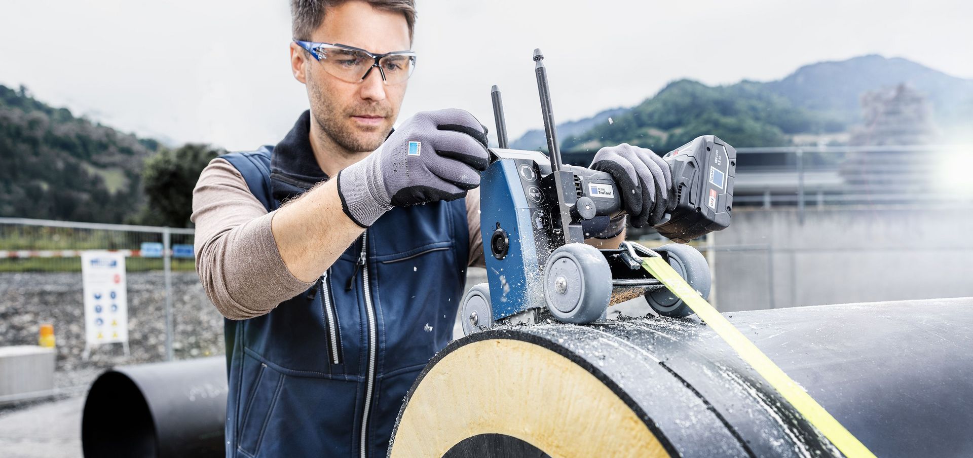 The Tube Cutter TC 200 is a portable and mobile tube saw for plastics, which is light to use and weighs only 4.2 kg. With its broad field of application that ranges from water supply and water treatment to wastewater disposal, it is very versatile. Other possible areas of application are pipeline construction, supply and cooling lines as well as gas and district heating supply. The Tube Cutter is easy to move, easy to carry and can be transported compactly in a case - without any annoying cables.