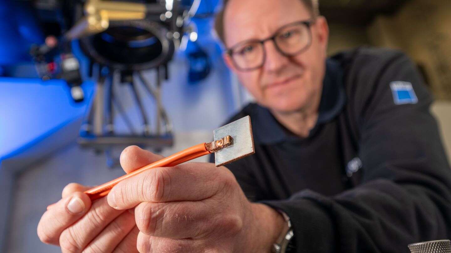 At the heart of the solution is the interaction between laser, sensor technology and AI. First, an AI-supported image processing system identifies the component and positions the laser beam with pixel-level precision. A 9 kW fibre laser then welds the copper strands. During the process, an optical coherence tomography (OCT) system monitors the welding depth in real time to prevent the component from being welded right through.