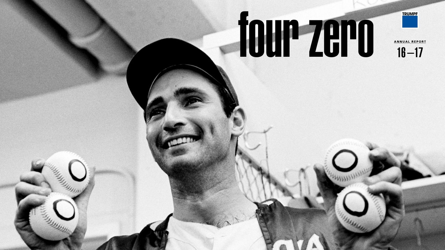 As reported in September, TRUMPF opened an Industry 4.0 demonstration factory in Chicago. The investment sum there amounted to 26 million euros for structures and equipment. Speaking of the United States, the latest annual report features a legend in American sports: baseball player Sandy Koufax. In four games in his career, this pitcher allowed zero hits by the opposing team – a 4.0 feat, so to speak.
