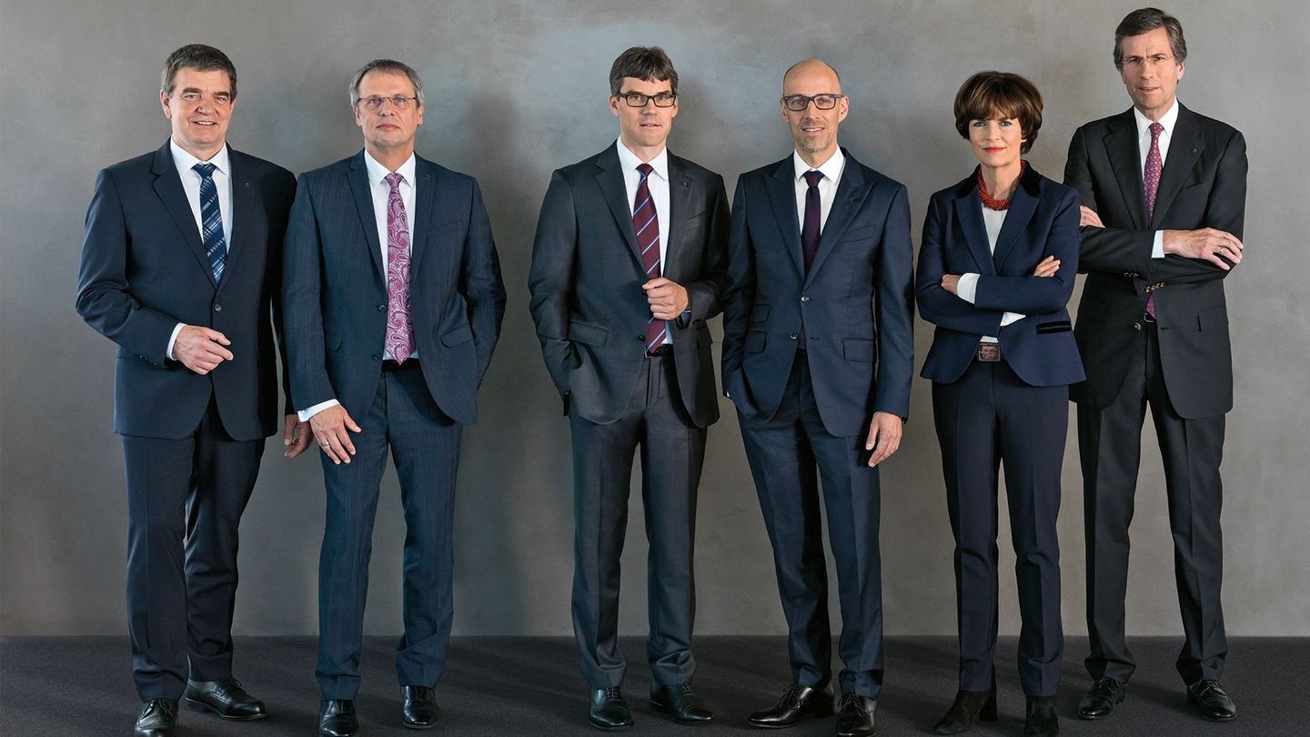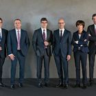 (from left to right) Dr.-Ing. Heinz-Jürgen Prokop, Dr.-Ing. Christian Schmitz, Dr. rer. pol. Lars Grünert, Dr.-Ing. E. h. Peter Leibinger, Dr. phil. Nicola Leibinger-Kammüller, Dr.-Ing. Mathias Kammüller