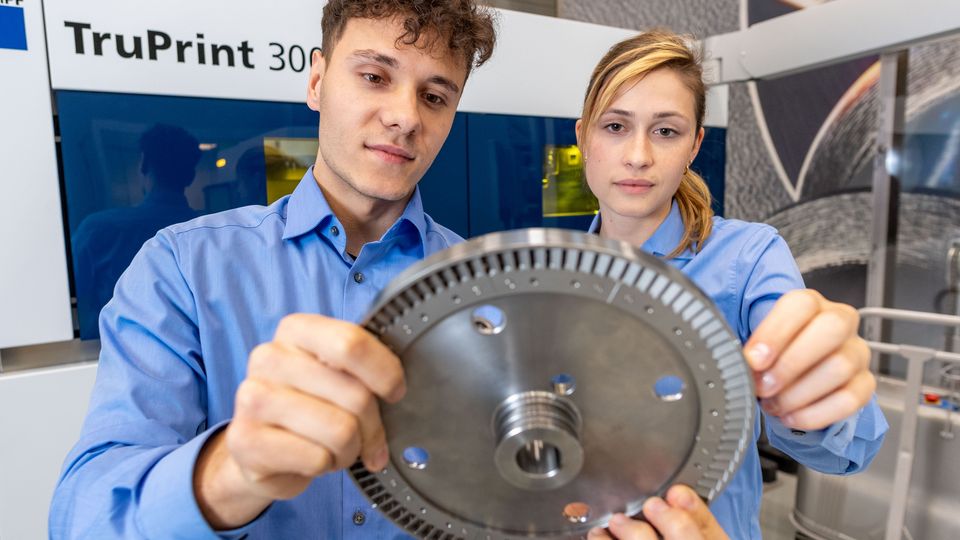 With conventional methods, 90 individual parts are required for this turbine blade wheel. Thanks to 3D printing, it can be produced in one piece. This saves time, material and costs.