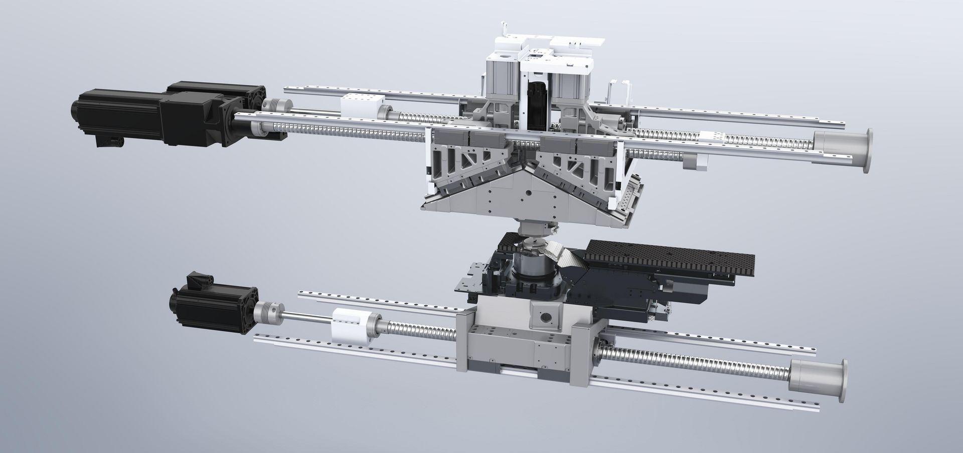 Delta Drive – the new superweapon in TRUMPF’s arsenal for punch and punch-and-laser processing. The patented drive was developed with an eye to achieving several goals, such as facilitating the construction of smaller machines and opening up new methods of material handling. But how? The secret of the Delta Drive is that it eliminates the need to move the sheet and work table in the Y axis – normally an integral requirement of sheet metal processing – making the punching head “fly” in that direction. This is made possible by an ingenious drive system, which is powered by two servomotors. When the servomotors move in the same direction, they allow the punching head to move back and forth in the Y axis. And when the ball screws rotate in opposite directions, this activates the punching stroke. This feature of the drive separates punch and die, allowing them to function independently of one another.