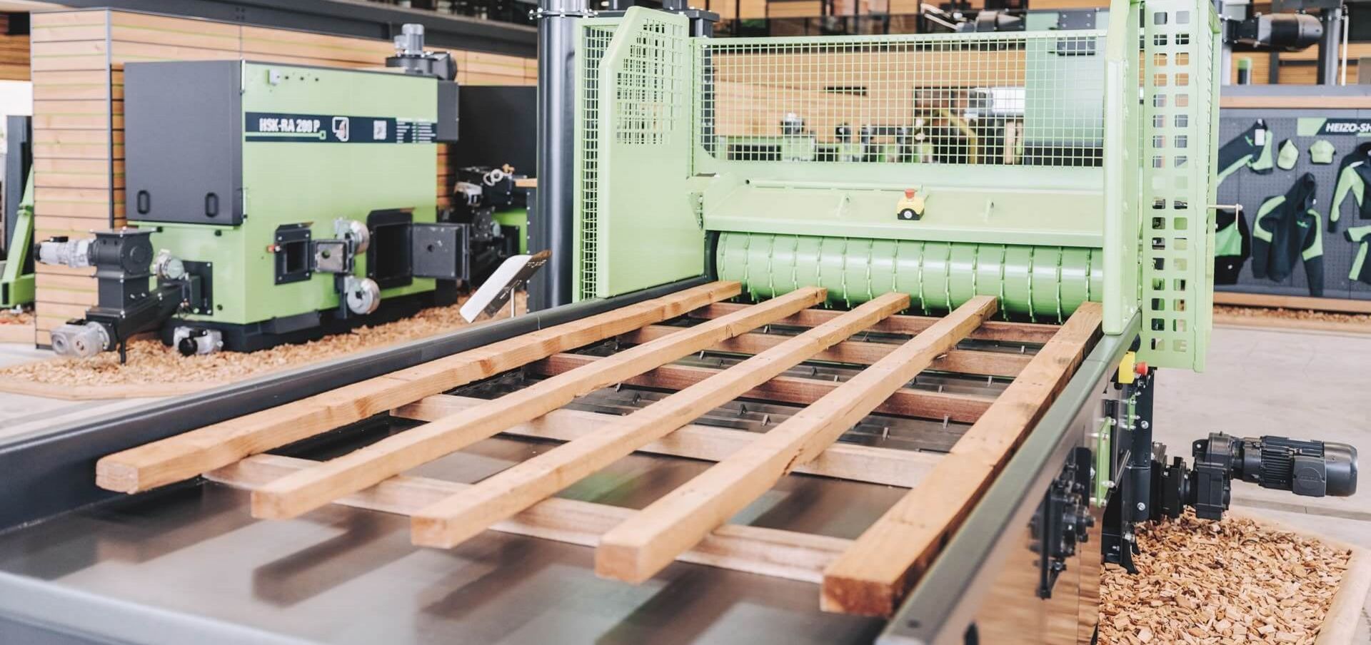 Bloos calls this an “energy-led” system, and its key characteristics are as follows: all the factory’s energy requirements are covered by sun, wind and wood, and integrated systems supply the production facilities with electricity, heat and even cooling. A woodchip heating system, together with a wood gasifier, forms the heart of Heizomat. The wood gasifier supplies both heat and valuable electricity – around the clock. Heizomat makes its own fuel on site: a pallet chipper turns delivery pallets – like the ones sheet metal arrives on – into woodchips. What looks like waste is instead transformed into a valuable energy source that keeps the plant fed with sustainable heat.
