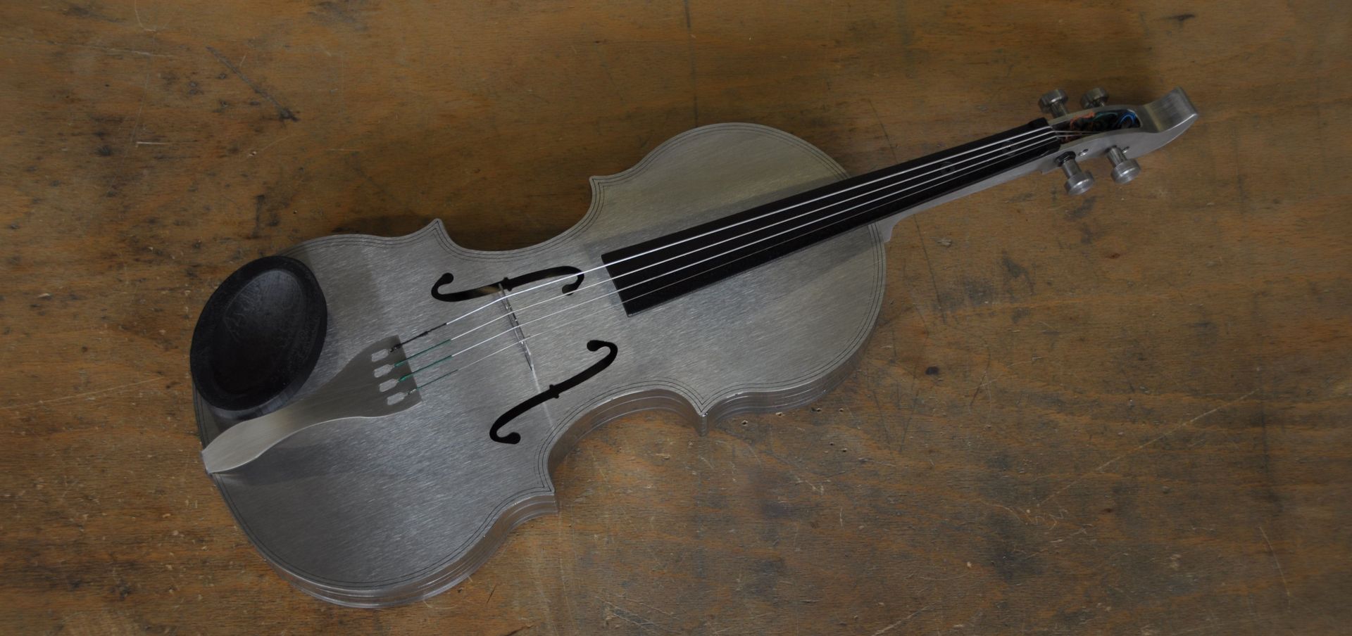 For Pichl, it was important to be able to construct an exact replica of a classical violin — the sheet metal instrument corresponds to the wooden standard in nearly every detail. Save for the material. The violin body is made completely of stainless steel, and the chinrest (made of plastic) was produced using a 3D printer in the training workshop. The neck — a milled part — is a test piece created by Nick Rampp, an apprentice from the prototype trials department.