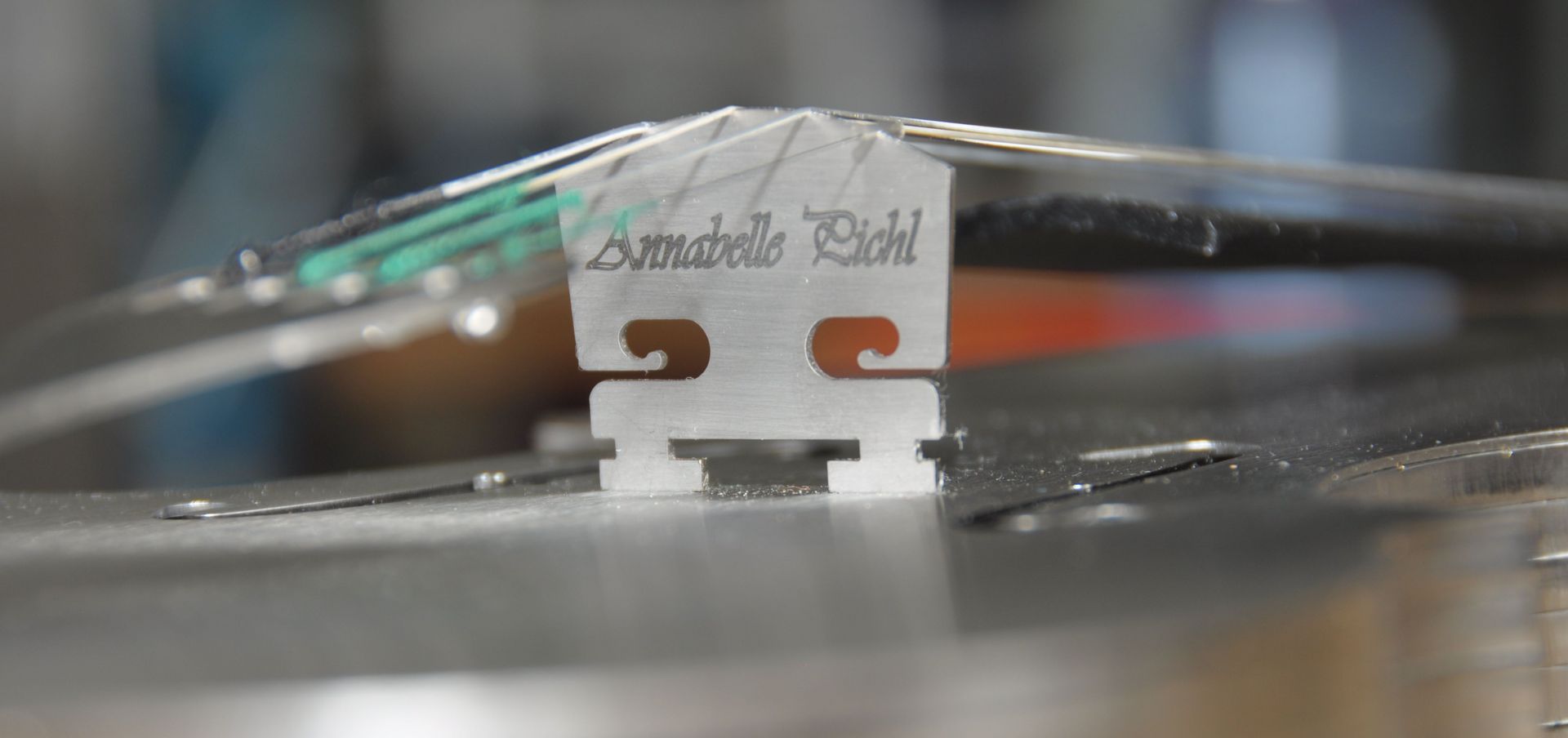 Annabelle Pichl — meanwhile a successful graduate of the apprenticeship program — has been employed at TRUMPF since the end of June as a mechanic in the demonstration center in Ditzingen. The violin has been honored with a display in the 3th floor reception area where all visitors can see the unquestionable versatility of sheet metal for themselves.