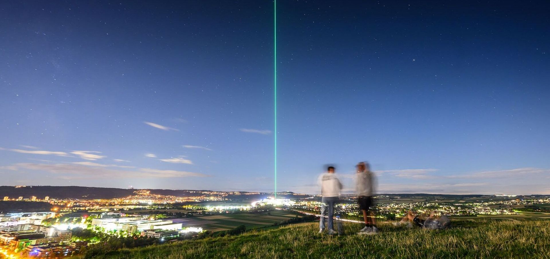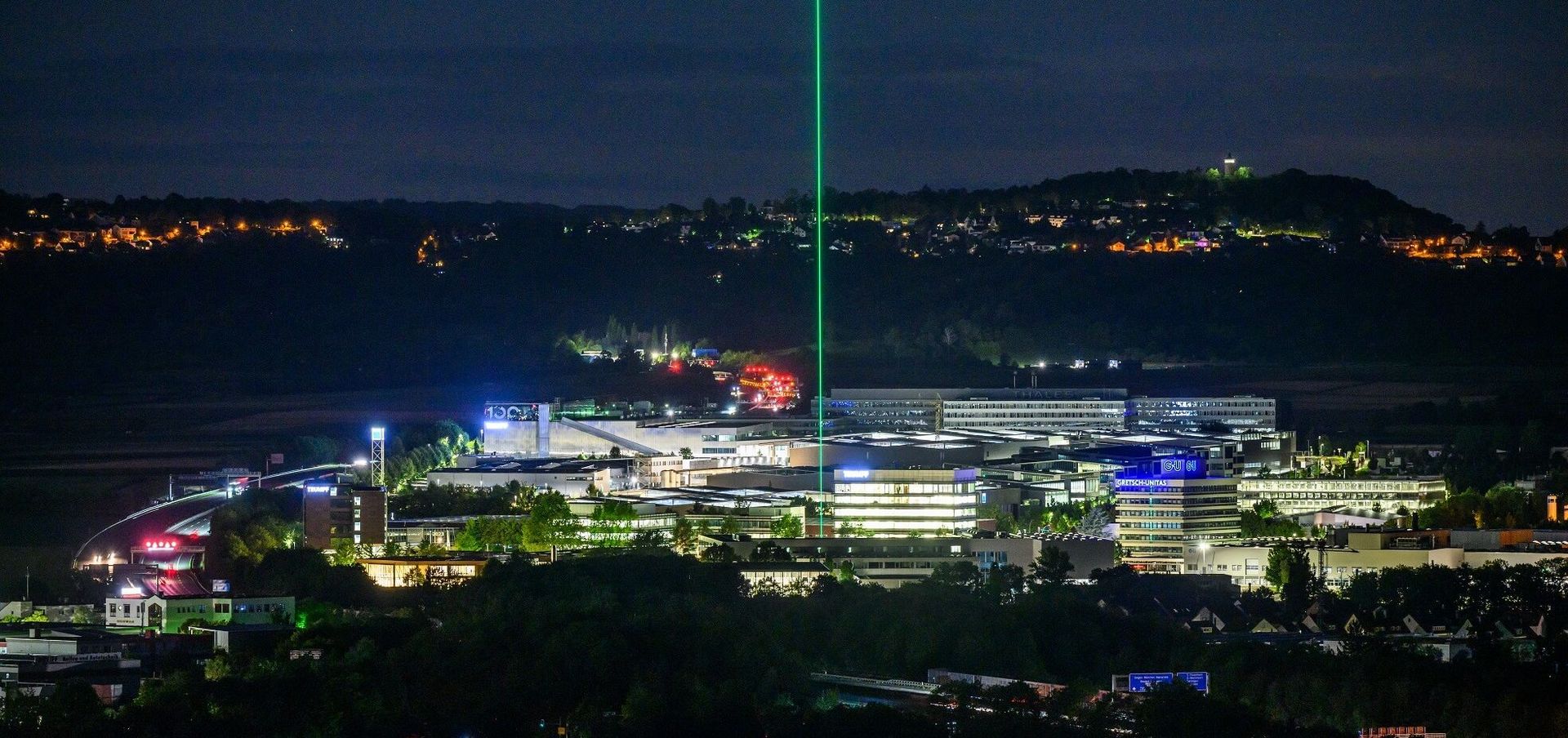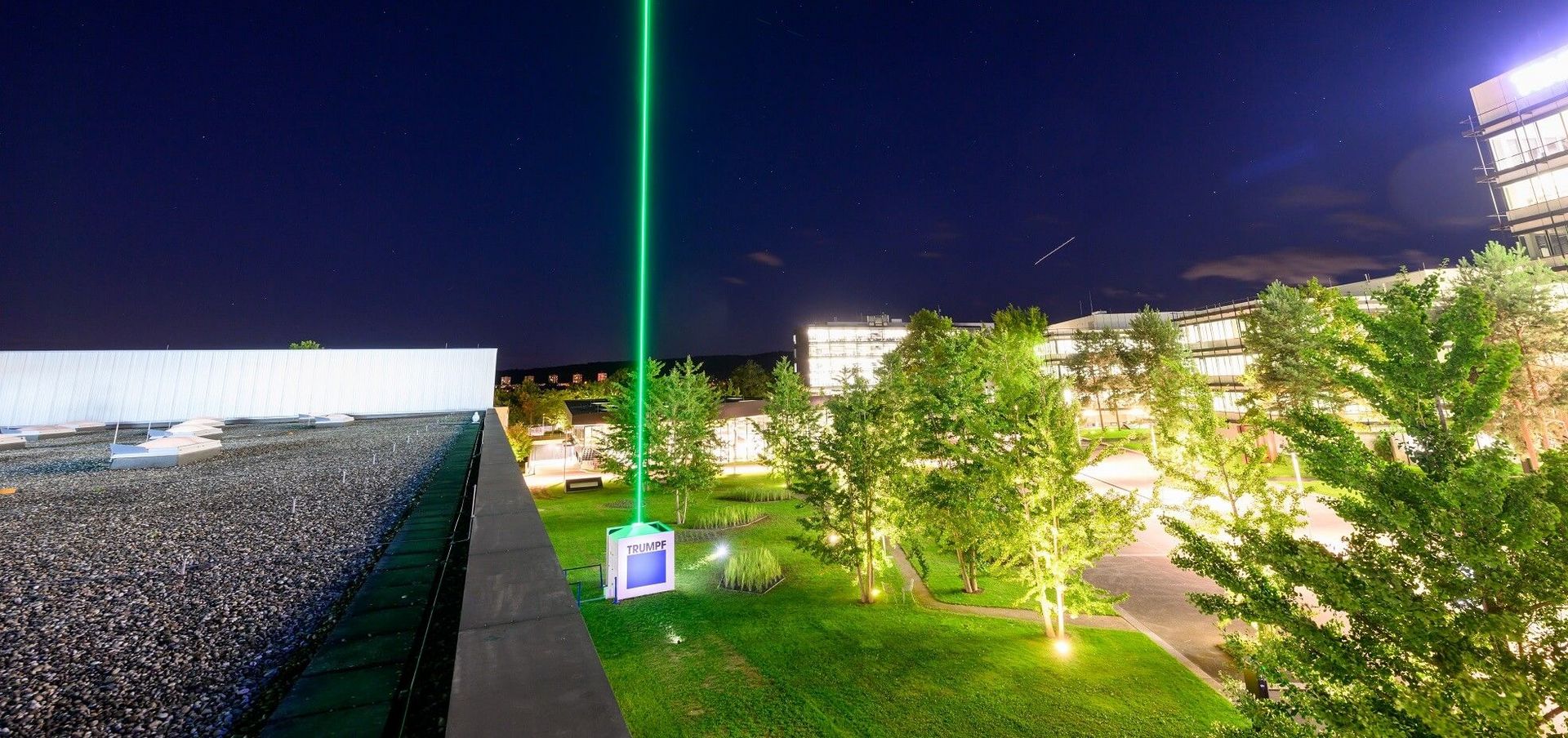 In recent days, many residents in Stuttgart and its surroundings have been asking themselves one question: are these aliens? Or is a UFO landing in the capital of Baden-Württemberg? The test run of the laser, which TRUMPF shone on the occasion of its 100th birthday, already attracted attention throughout the region. On the evening of 3 August 2023, the time had finally arrived: at around 9:30 p.m., the green laser beam shone from the TRUMPF campus in Ditzingen about ten kilometers into the air. Thanks to the good weather conditions, the green mega-laser was visible up to 80 kilometers away. What better way to celebrate the 100th anniversary of a high tech laser manufacturer, than by lighting a birthday candle into the sky!