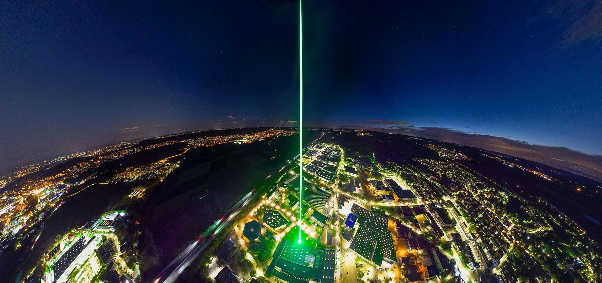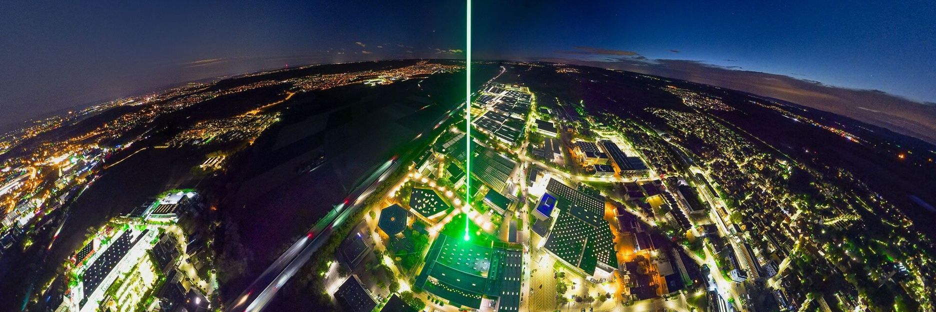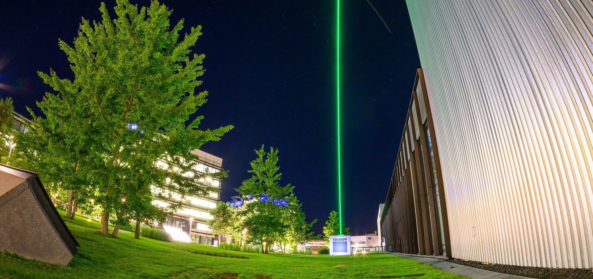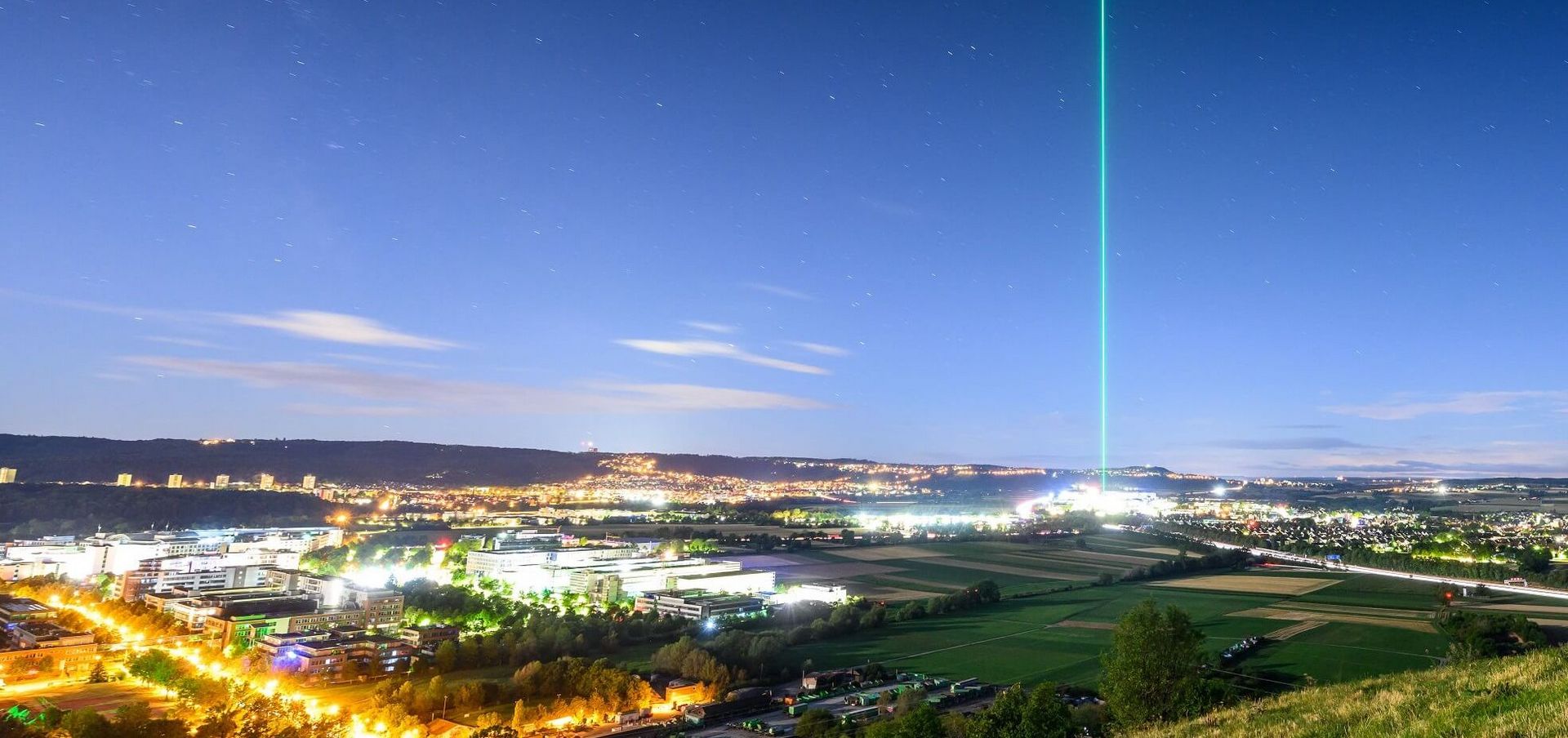 In recent days, many residents in Stuttgart and its surroundings have been asking themselves one question: are these aliens? Or is a UFO landing in the capital of Baden-Württemberg? The test run of the laser, which TRUMPF shone on the occasion of its 100th birthday, already attracted attention throughout the region. On the evening of 3 August 2023, the time had finally arrived: at around 9:30 p.m., the green laser beam shone from the TRUMPF campus in Ditzingen about ten kilometers into the air. Thanks to the good weather conditions, the green mega-laser was visible up to 80 kilometers away. What better way to celebrate the 100th anniversary of a high tech laser manufacturer, than by lighting a birthday candle into the sky!