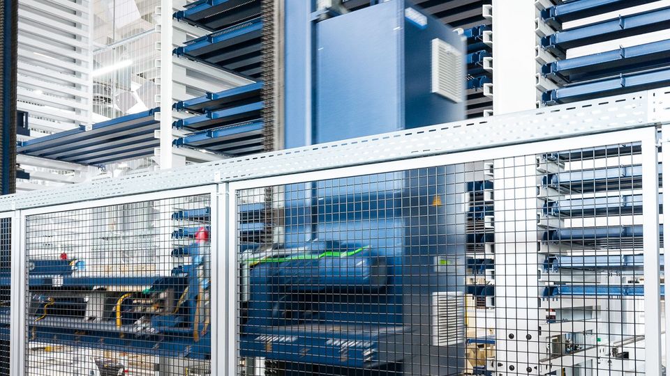 Over the past 85 years, Memmert GmbH + Co. has evolved into a leading innovator in the field of temperature control technology. In 2016, the company opened a fourth production hall, adding a further 4,200 square meters of space to its facilities in Büchenbach near the city of Nuremberg in Germany. “Our aim was to relocate the noisy punching and bending areas,” says Christina Gretschmann, who took on the role of project manager for the new building at this time. “But we also wanted greater transparency. In the old production hall, our raw materials were spread throughout the facility, and we often struggled to find batches of finished parts, so people were wasting time searching for them.” The decision was therefore taken to install a large-scale STOPA storage system at the heart of the new building with enough capacity to connect up six punching and bending machines plus all the necessary automation components. The main doubt in Gretschmann’s mind when planning the new facility was whether one storage and retrieval machine would be enough, or whether the new storage system would need two. “Our punching machines run 24 hours a day, seven days a week. That’s what the SRM has to cope with!”