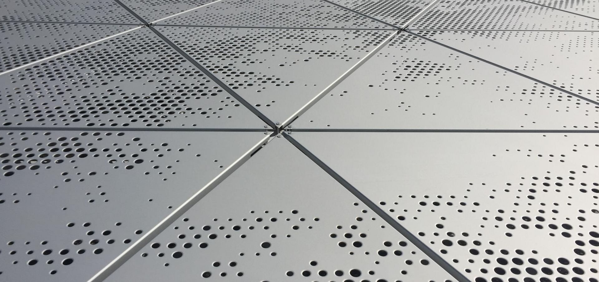 But the ETFE roof canopy and LEDs are not the only remarkable features of this innovative stadium. The roof is framed by some 37,000 custom aluminum panels, each of which has its own unique design. So how did the fabricator accomplish such a seemingly impossible task? The architects used a complicated algorithm to distribute holes across each panel in an apparently arbitrary fashion, focusing primarily on aesthetics and the way in which light would fall through the resulting canopy. “Producing those panels in any kind of conventional way would have taken forever, however many programmers we had,” says engineer James Coleman, Zahner’s Vice President of Innovation.