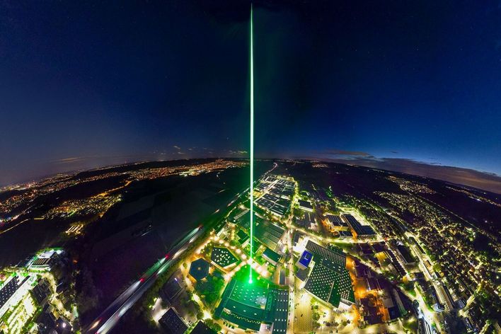 The green light is generated by a laser with three kilowatts of power. "This laser is extremely energy-efficient. When operated for one hour, the laser consumes about as much energy as eight people blow-drying their hair at the same time", explains Barthold. Around 35 laser specialists, safety specialists, design engineers and other experts were involved in the project. In addition to TRUMPF's laser expertise, the operation of a laser of this type requires extensive specialist knowledge. Among other things, the airspace must be monitored so as not to cause any risk to air traffic. The show laser company Lightline is responsible for this and for operation of the laser. Lightline has over 30 years of international experience in show laser technology and specializes in challenging laser applications. Lightline's customers include world-famous names in the entertainment industry.