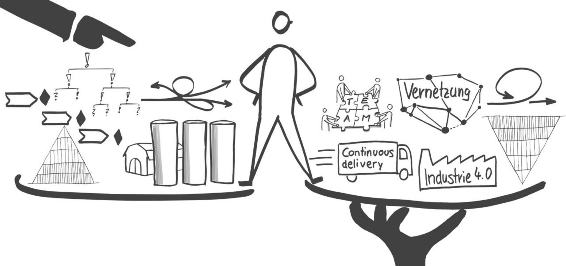And raising capital is no exception. It’s no longer only money that is the limiting factor, but also the search for the brightest minds in the global workforce. In the industrial age, companies invested a lot of time in drawing up detailed plans, because it was difficult to raise capital. But nowadays companies are more willing to experiment. Today, the primary competitive factor is speed, and companies that devote too much time to planning now find themselves left behind by their competitors. What matters is being flexible enough to deliver your goods quickly, because otherwise customers will simply turn to the next provider. Businesses today are shifting from zero-defect strategies to zero-time strategies, and that explains why they need to take a new approach to how they work. The industrial age coined the terms “thinkers” and “doers,” leading to line structures and hierarchical thinking within organizations. And that’s where we’re now seeing the biggest transformation of all – the shift towards collaborative methods of thinking and working.
