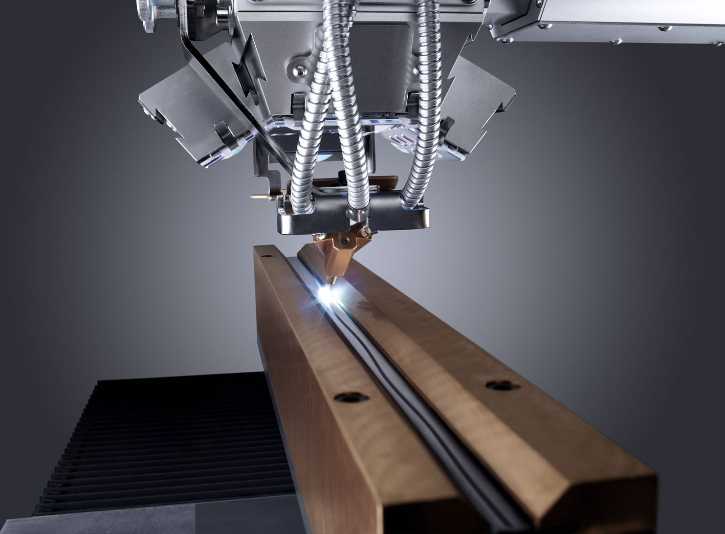 The optics help you focus the laser beam precisely on the weld. The simultaneously supplied shielding gas ensures an even higher quality welding result and thereby reduces time-consuming reworking of the weld seam.