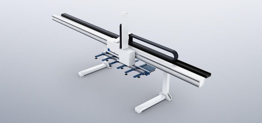 Large format or small pre-cut parts, the station even flexibly turns preformed parts, including ones from the punch-laser combination machine..