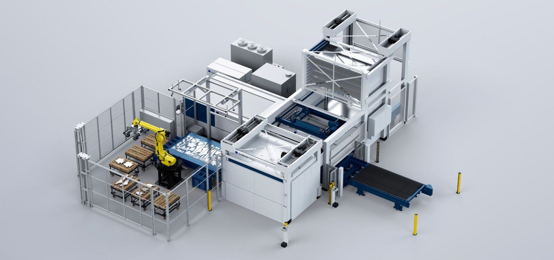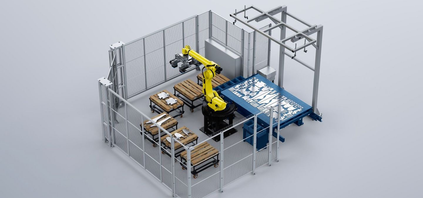 SortMaster Vision's optical image recognition captures all separated parts and compares them with the machine's cutting order with the help of AI. Strategies for sorting and gripping the parts are developed independently. It does not matter if they have slipped or possibly overlapped after separation. This eliminates the need for time-consuming programming. A time-saver, especially for small quantities or a flexible range of parts. Sorting onto pallets is carried out according to defined sorting criteria, such as subsequent processes. This increases the overall productivity of your production during the day and with unattended shifts at night. SortMaster Vision is a unique solution on the market that is also individually scalable depending on performance and load capacity. SortMaster Vision increases your process reliability and flexibility in the parts spectrum. Your next step towards the autonomous factory.