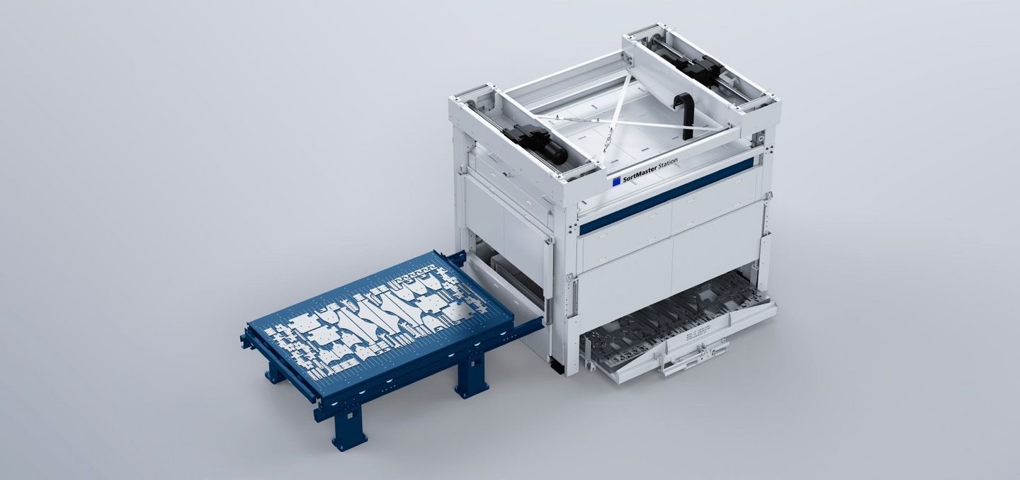 Gain a clear competitive advantage and automate time-consuming and costly processes - simple, reliable and certainly innovative. No programming. From complex part geometries to sheet thicknesses of 25 mm: our all-in-one sorting solution masters even the broadest spectrum of parts. Benefit from increased machine utilization rates, reduced operator involvement and overall lower part costs, even for small batch sizes. The SortLine, SortMaster Station and SortMaster Vision product line - a unique solution on the market. It enables smooth production without tilted parts and collisions and ensures a considerable reduction in working time even during manual sorting. Automated, reliable sorting is your introduction to the unattended shift.