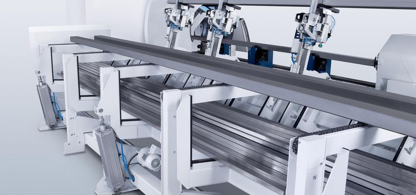 Conveyor tables at an ergonomic height make it easier to unload tubes and profiles. They also serve as a practical material buffer.