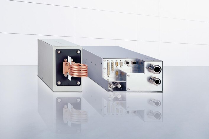 In this version, the external circuit, which is used directly at the point of heating, has an extremely compact design. This means the integration into systems and units is considerably easier. Due to power control from almost 0% to 100%, the generator is ideally suited for use in high-precision, temperature-controlled processes.