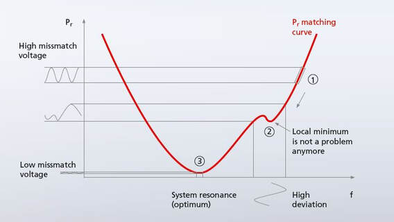 Automatic frequency tuning for optimal interaction between the generator and the matchbox.