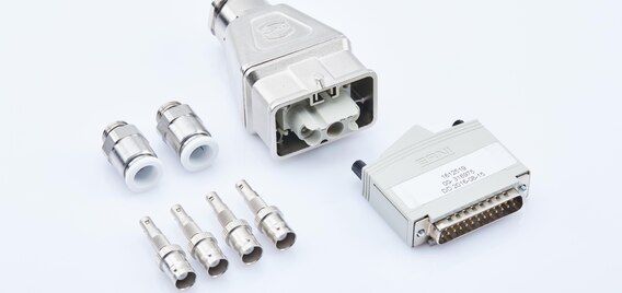This is comprised of an adapter for water connections, a HARTING AC supply set, a jumper for the the interlock function, and an adapter from LEMO EPL to BNC female (for clock and pulse sync plugs).