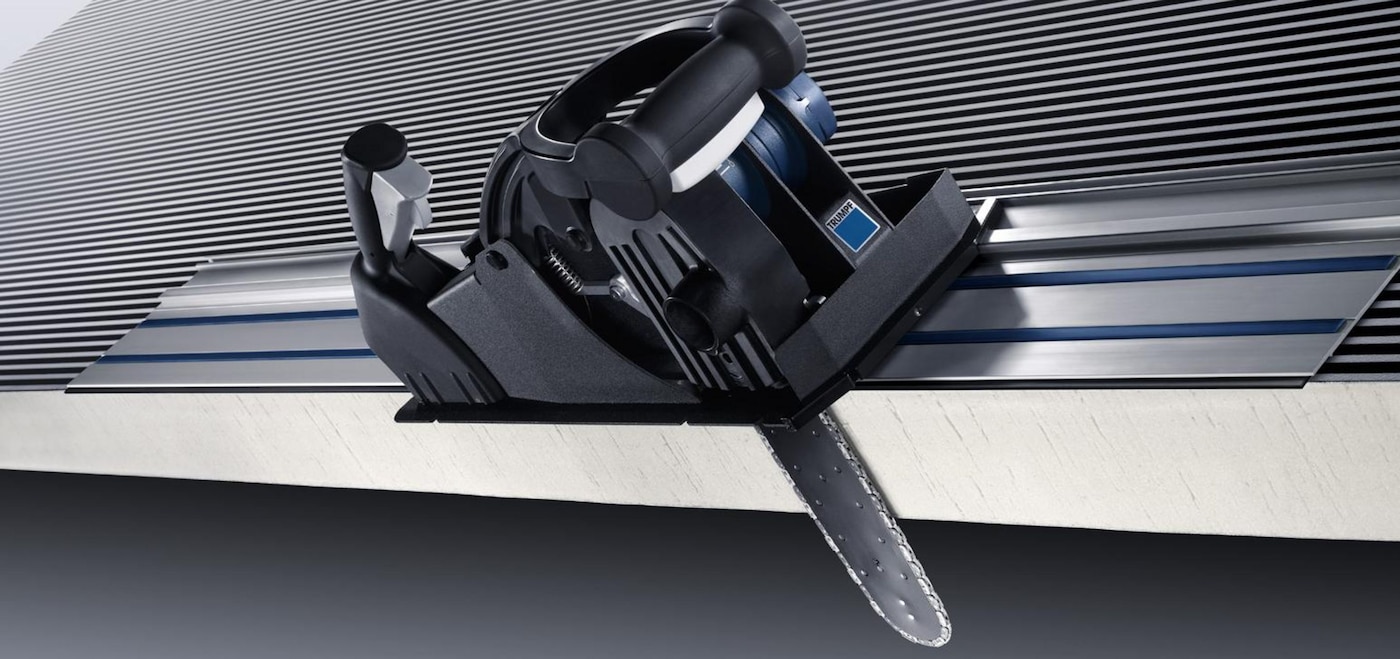 Swiveling 90° blade, well-suited for perpendicular cutouts with a depth of up to 6.5 inches.