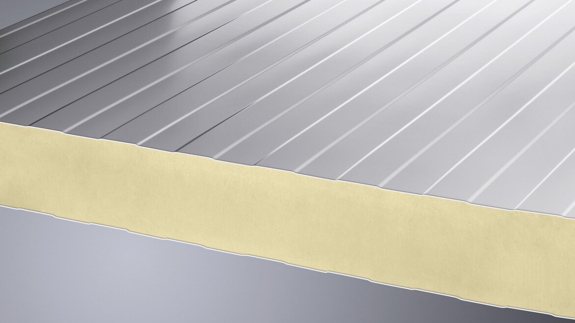 Roof panels. Steel or aluminum surface. Insulation material: Polyurethane foam, polyisocyanurate foam. For panel thicknesses up to 6.5 inches.
