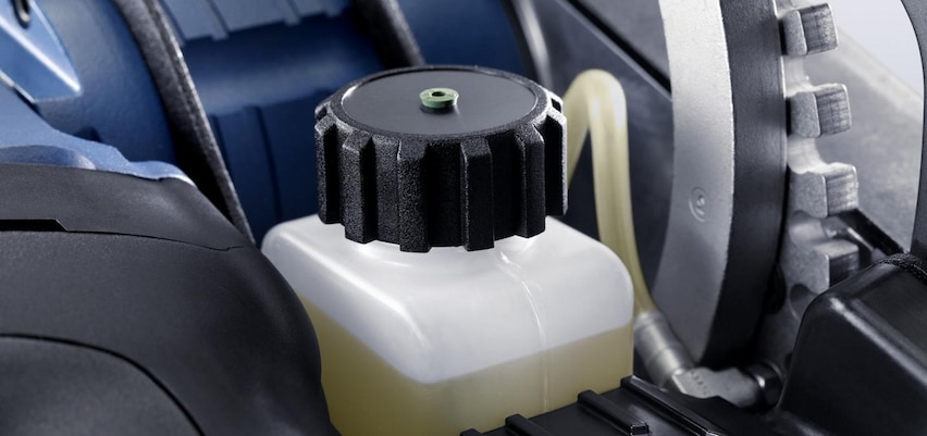 Replacing the chain and blade is quick and simple: Remove the protective cover, lift the saw chain with the blade out of the chain wheel, insert a new saw chain, and tighten. It is helpful and valuable to have the right combination wrench, kept in the machine and close at hand.