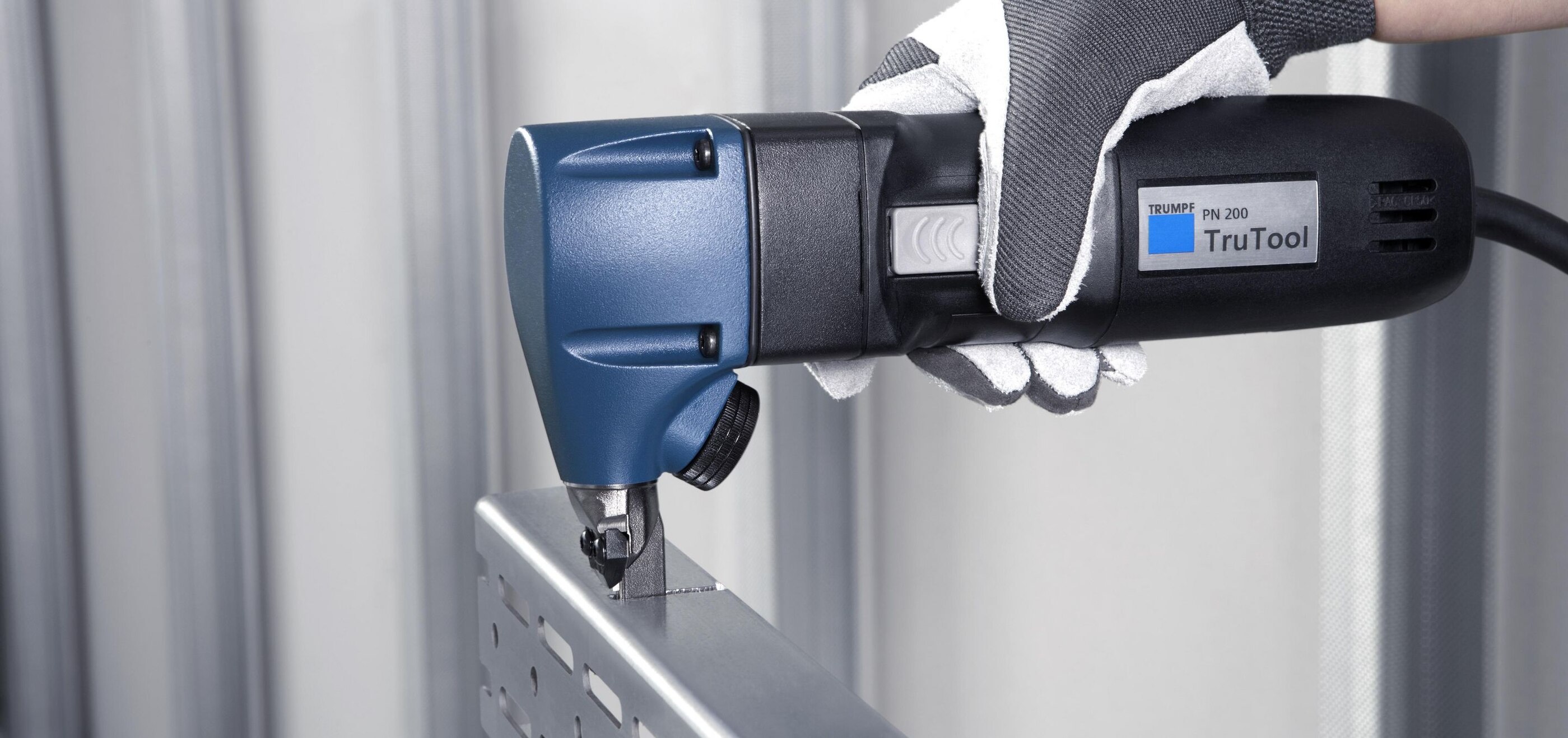 With its short tool, the TruTool PN 200 is specifically designed for trapezoidal sheets up to a profile depth of 3.4 inches and C-L-U profiles. Its performance is powerful enough for up to 0.08 inches in mild steel and 0.04 inches in stainless steel and it even cuts doubled sheets. You can also rotate the tool through 360° on the spot. The cutting direction, punch, and die carrier can be changed quickly, without the need for tools. You can choose from various tool depths to broaden the areas of application.