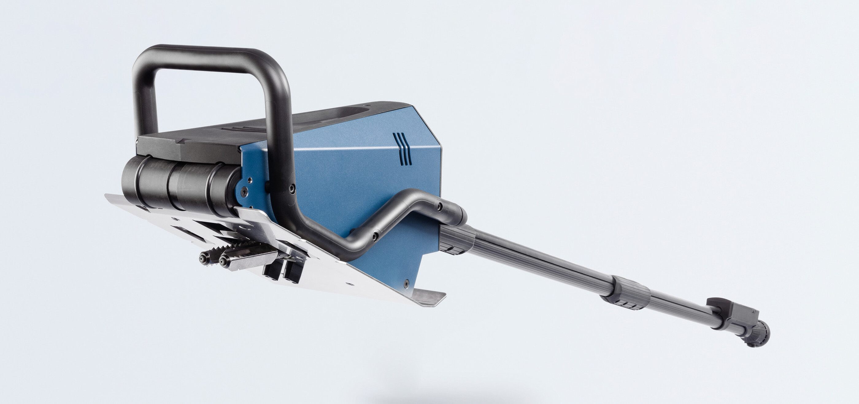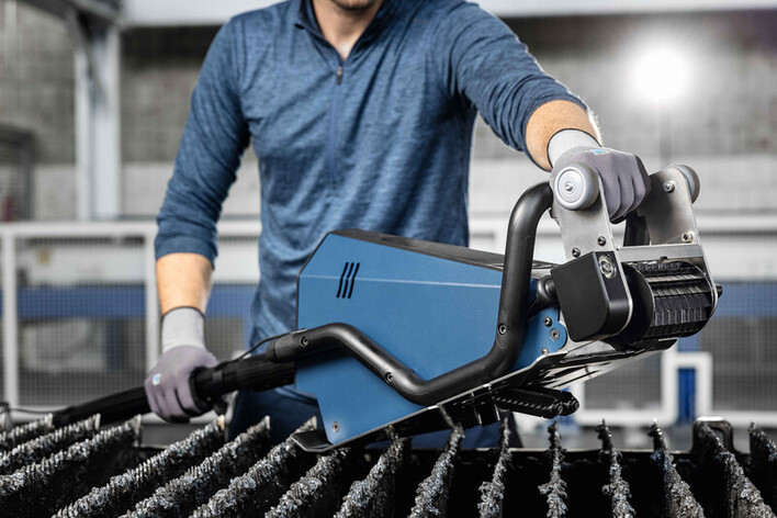 The ergonomically shaped plastic handle makes it easy and convenient to place the machine on the pallet to be cleaned. In addition, the positioning markings on the housing cover and handle indicate where the slat to be cleaned is located.