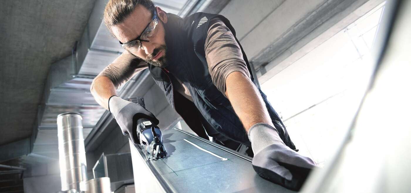 The TruTool C 160 12V LiHD rechargeable battery with integrated chip clipper for two-handed operation is ideal for notching work and interior cutouts of up to 1.6 mm in mild steel and 1.2 mm in stainless steel. It enables you to clip chips at any point. The cuts are free of deformation and of high quality, and the 4.0 Ah / 12V LiHD rechargeable battery guarantees long runtimes.