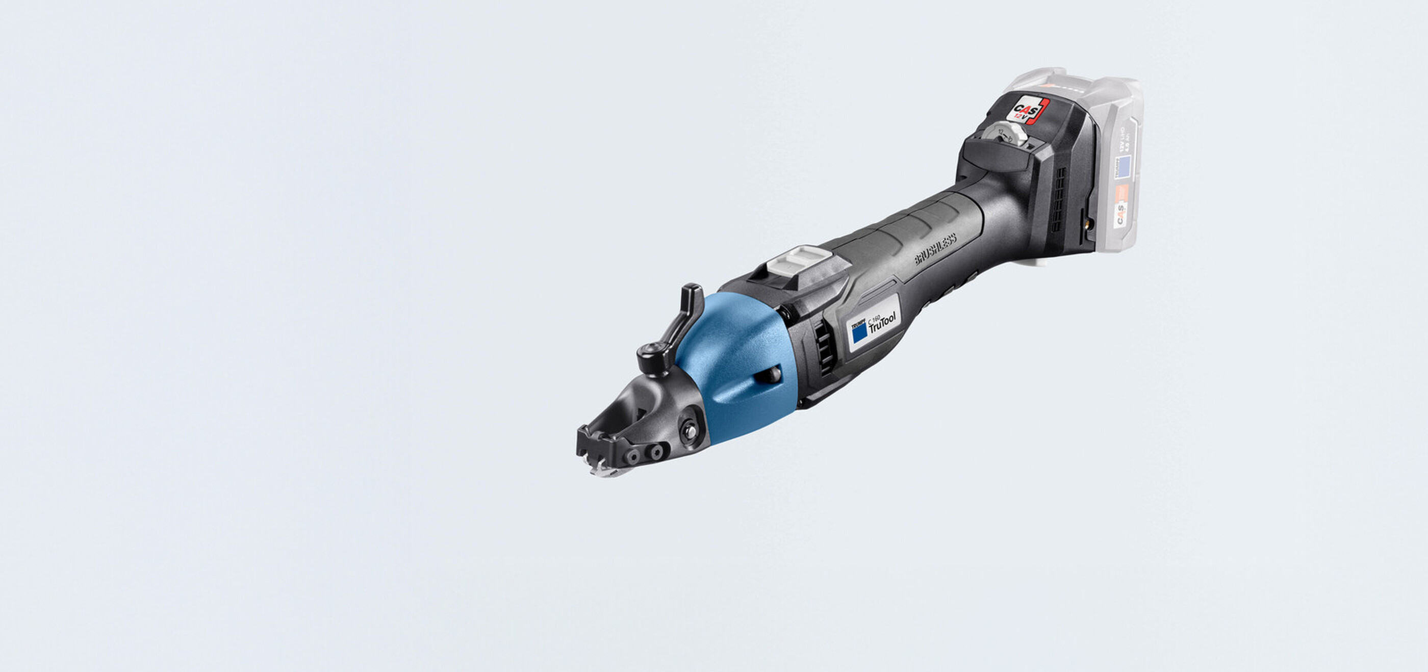 The 12V rechargeable battery tool has a lightweight design enabling fatigue-free working. The soft grip ensures safe and low-vibration working. All TRUMPF rechargeable battery tools are also available as stand-alone versions, i.e. without rechargeable batteries and recharger. If you already have CAS batteries available, you then have the option to save on resources and cut costs.