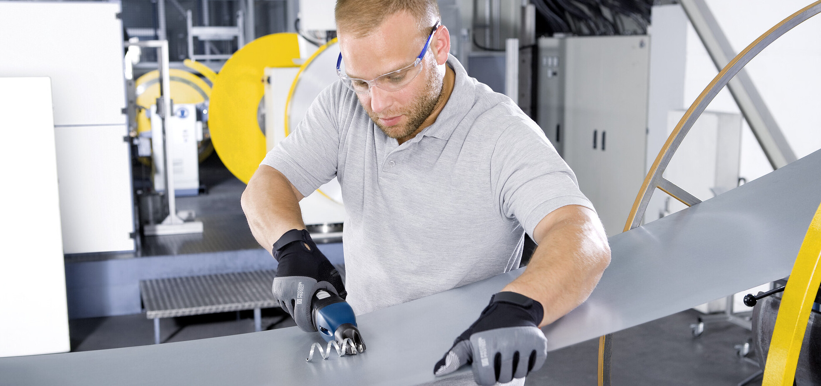The 12V battery machine without chip clipper is particularly well-suited to cutting tasks without chip clipping during the cutting process. For example if you are cutting straight sheets to length or for curved cutting. We have different blades available to match the application. The 4.0 Ah / 12V LiHD rechargeable battery also ensures long runtimes.