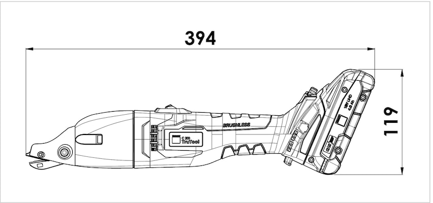 The TruTool C 200 18V LiHD rechargeable battery features an open cutting head. This allows you to pull the machine out of the sheet easily. A chip clipper is not necessary. The steel cutting head is powerful and robust. You can achieve an extraordinary amount of power when cutting spiral ducts. The tool set used for spiral ducts, which consists of toothed cutting blades and a robust SC cutter, is capable of fold thicknesses of up to 3.6 mm with mild steel and enables both longitudinal sections and cross-sections. To broaden the range of applications, we have 5 further sets. This enables you to place the focus on cutting quality, speed, performance on curves, or the material. The 4.0 Ah / 18V LiHD rechargeable battery also ensures long runtimes.