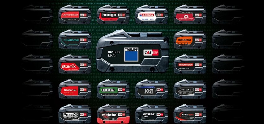Cross-manufacturer rechargeable battery system for leading power tool brands. 100% compatibility in the 18-volt class.