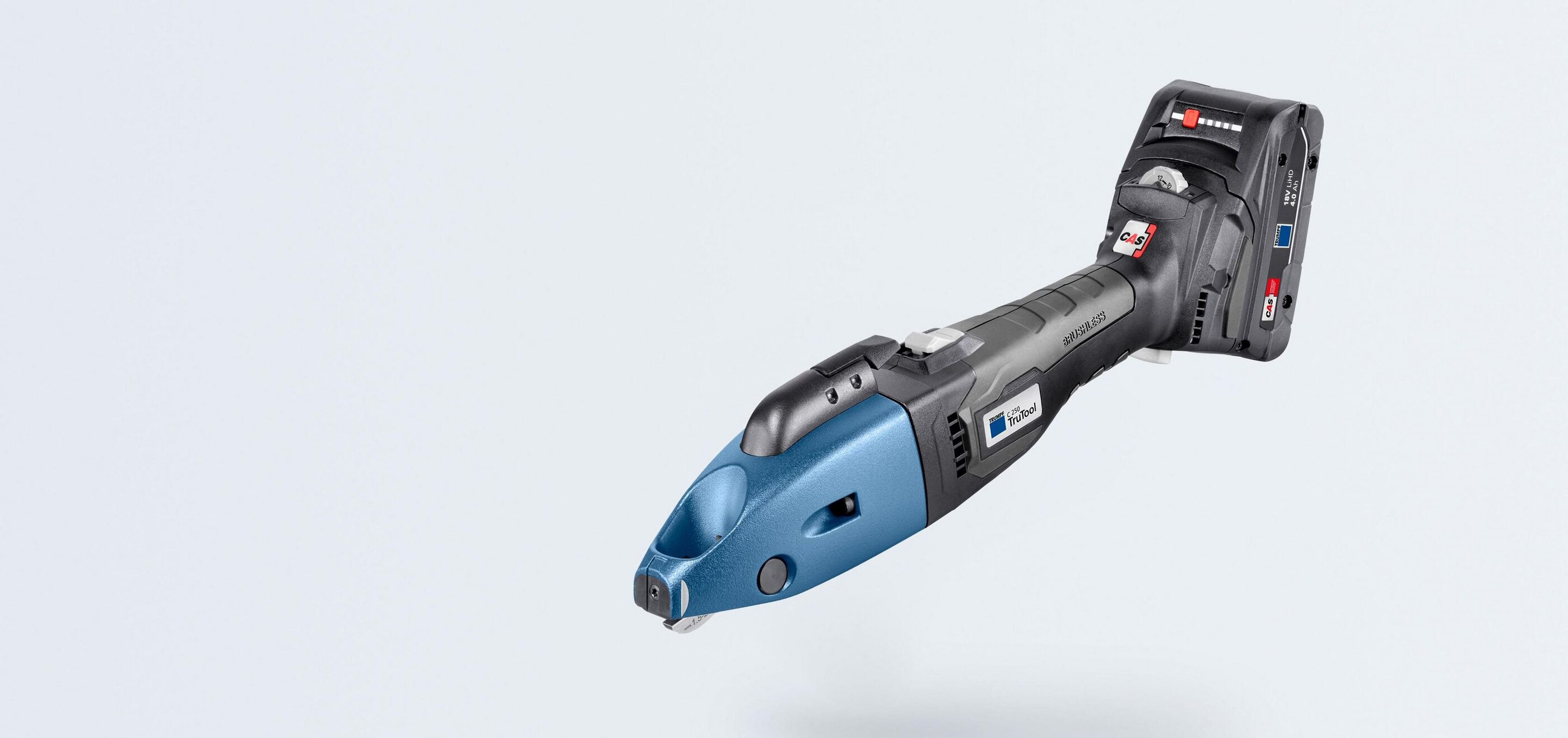 The first slitting shears with rechargeable battery for cutting mild steel up to 2.5 mm and stainless steel up to 1.5 mm.