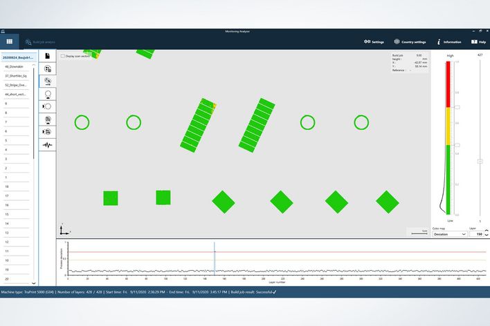 With TruTops Monitor, you are also provided with complete transparency externally across your machinery, along with the option of remote access. Observe, analyze, and control your TruPrint machinery comfortably from your desktop. The analysis of the machine data and utilization of the entire machinery will enhance your industrial additive manufacturing. Error notifications via email give you the option of modifying your processes as quickly as possible.