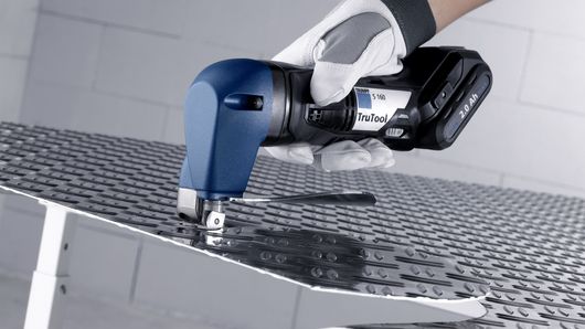 The shear principle allows deformation of the material, but no material is lost in the form of scrap chips. When cutting with the sheet metal cutters ,the upper moving cutter blade moves against the fixed lower cutting table blade. This puts high tension on the material to be machined and creates what is known as a lead crack. With sheet metal cutters, the material is sheared off at a high cutting speed and the cutting table blade absorbs the entire shear force of the moving cutter blade.