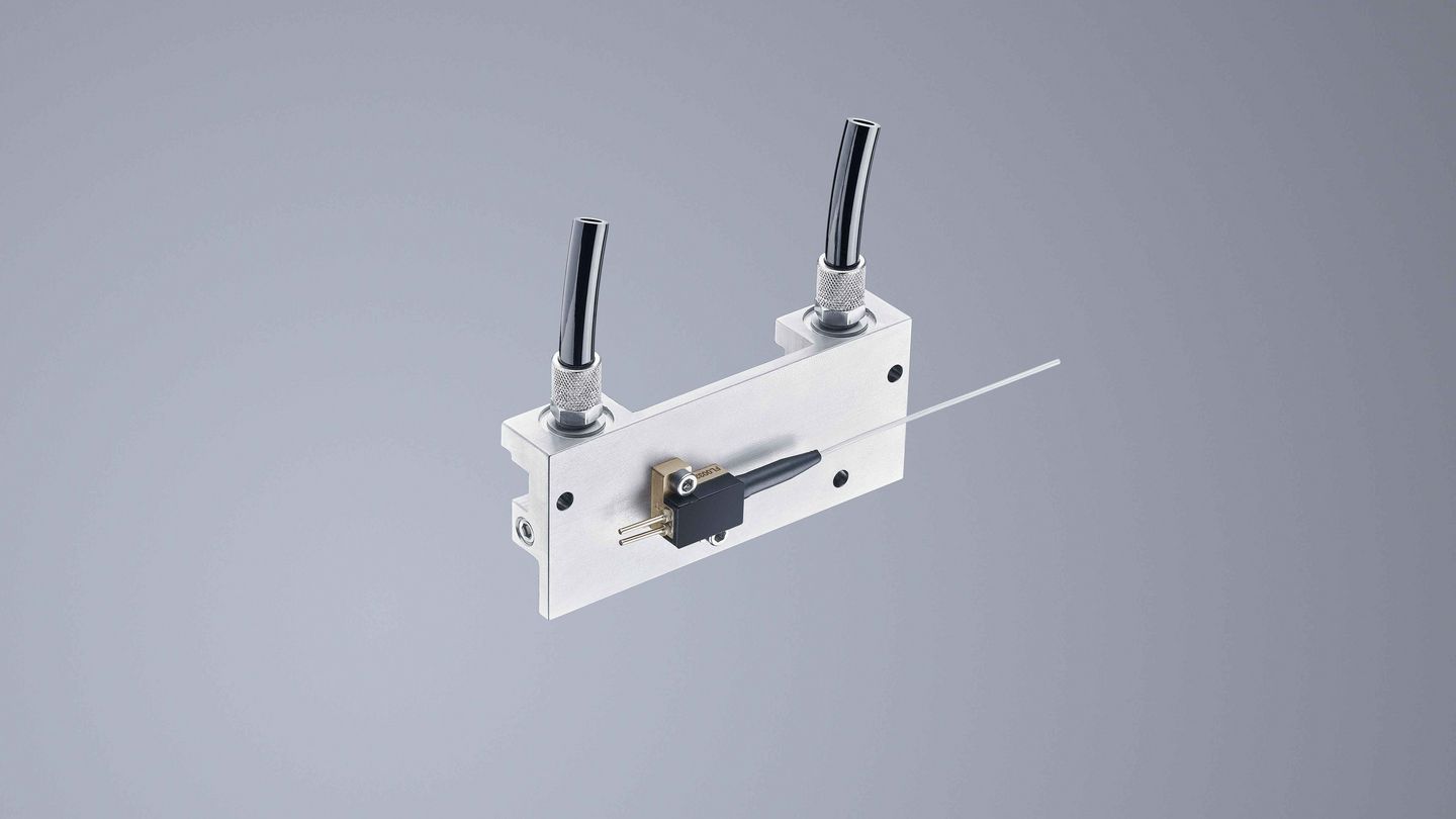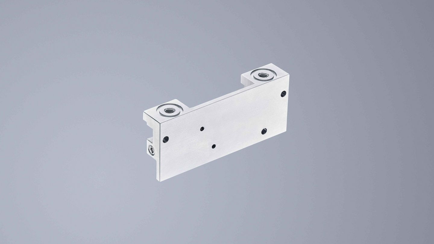 This diode cooler is part of a movable sensor unit in a TRUMPF laser cutting machine. The task of the assembly is to attach and cool a diode and electronics. It was redesigned as a series component for additive manufacturing: Functional integration of clamping elements to accommodate the diode and the bayonet connections for attaching hoses and for weight reduction, which leads to lower G-forces. Conformal cooling increases the service life of the diodes and electrical shielding is also integrated.