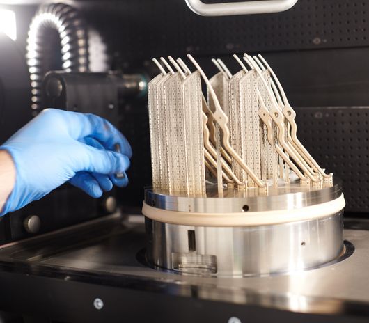 Swiss m4m Center developed a medical gripper for demonstration purposes. Its delicate and complex structures are designed to show customers the opportunities of 3D printing. "The TruPrint 2000 printed the surgical instrument seven times from stainless steel 1.4542 / 17-4PH within just a few hours," explains Bouduban and continues: "This example should demonstrate to customers how easy prototype construction can be with additive manufacturing. The TruPrint 2000 also offers the option of producing small series of special products quickly and economically." The simple operation of the machine, as well as its uncomplicated part and powder handling make the system an ideal entry-level machine for Bouduban. "The TruPrint 2000 does not overwhelm its user, yet still offers enough options so that capacities limits are not reached immediately."