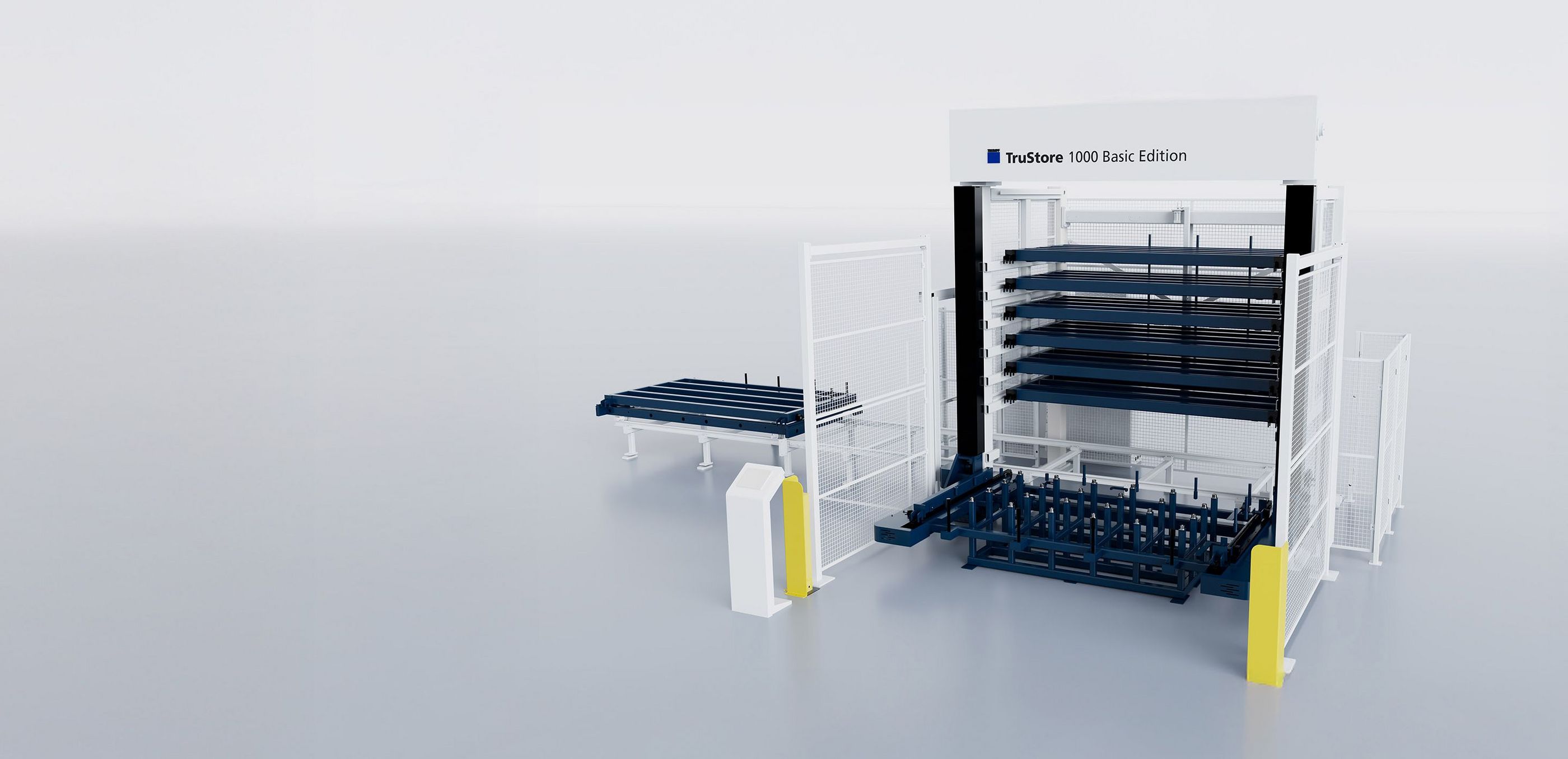 借助 TruStore 1000 系列 Basic Edition,您只需付出低廉的投资便可轻松入门智能化钣金生产。配合 TRUMPF Oseon 生产管理软件,您可高效管理物料,并可按需精准将其输送至主要机床。单塔式结构集成了周转站与堆垛机,充分利用了空间,同时具备极高的灵活性。可选 6 或 12 个储位,每个储位具备 90 mm 上料高度和 3 吨上料重量。原材料存储功能可减少您对人工的依赖,并有助于实现无人值守生产——全天候提升生产力。