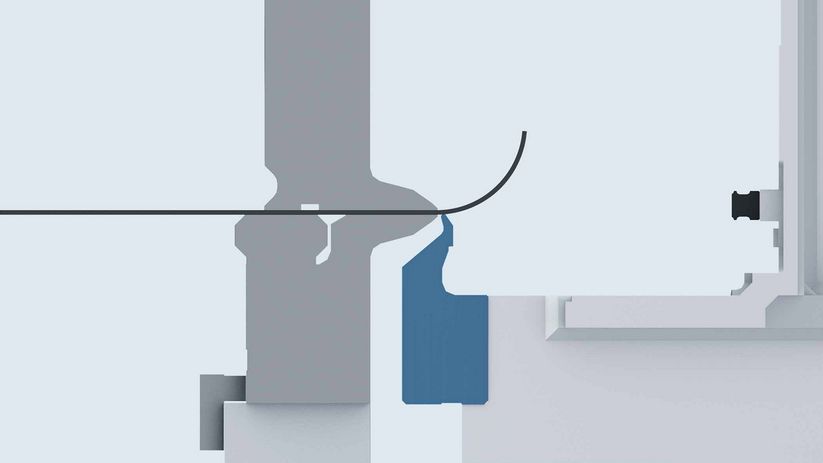 利用特殊压边模(ENW),您可加工十分狭窄的型材,或者是在靠近折弯线处有成形结构的工件。在需要时,机床会从上方自动摆入模具。而不必为此更换或修改现有的标准压边模。这样就可不再受限于狭窄折弯轮廓或频繁换模。