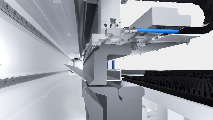 TruBend Center 7030 配备的 ENW 自动夹紧装置可优化 ENW 模具的更换流程,提升加工可靠性并提高整体自动化效率。这样就可有效消除人工夹紧所带来的问题,例如时间损失和操作错误。