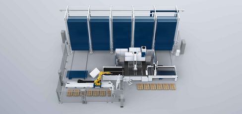 通过料库 TruStore 3030 或 STOPA 大型料库可根据需求组织材料装卸。料库连接是 TruBend Center 7030 翻板折弯机上下料单元的完美补充,提高生产效率。