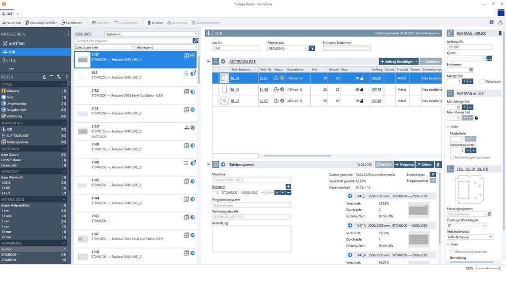 精准扩展 TruTops Boost。如(剩余)板料管理等选配有助于了解板料库存。零件分单有助于激光加工机床更快完成分拣。