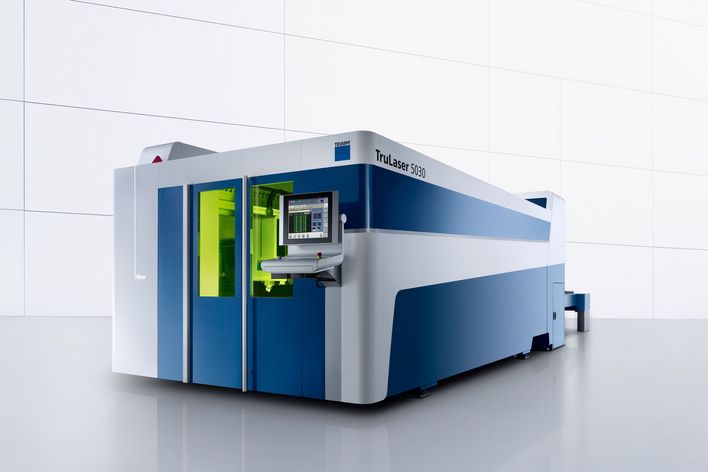 TruLaser 5030 fiber 在 2010 年于汉诺威举办的欧洲国际金属板材加工技术展览会 (EuroBLECH) 上展出。凭借 TruLaser 5030 fiber / 5040 fiber,通快提供采用固体激光器的最为经济高效的加工解决方案。利用 TruDisk 固体激光器实现多达三倍进给。通过选配 BrightLine fiber,该机床可加工薄型与厚型板材,确保出色的零件质量。