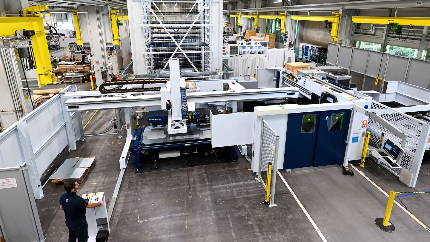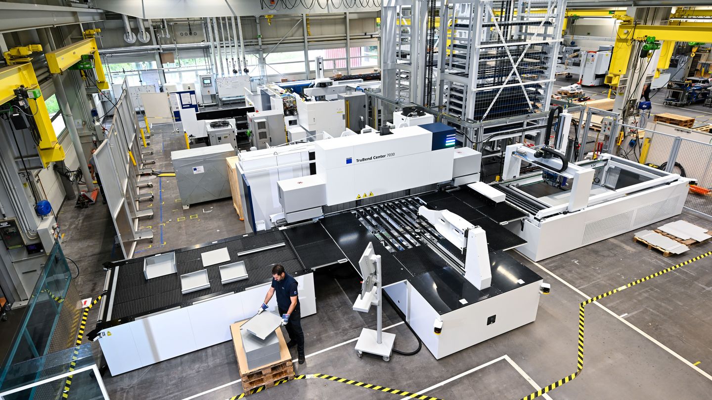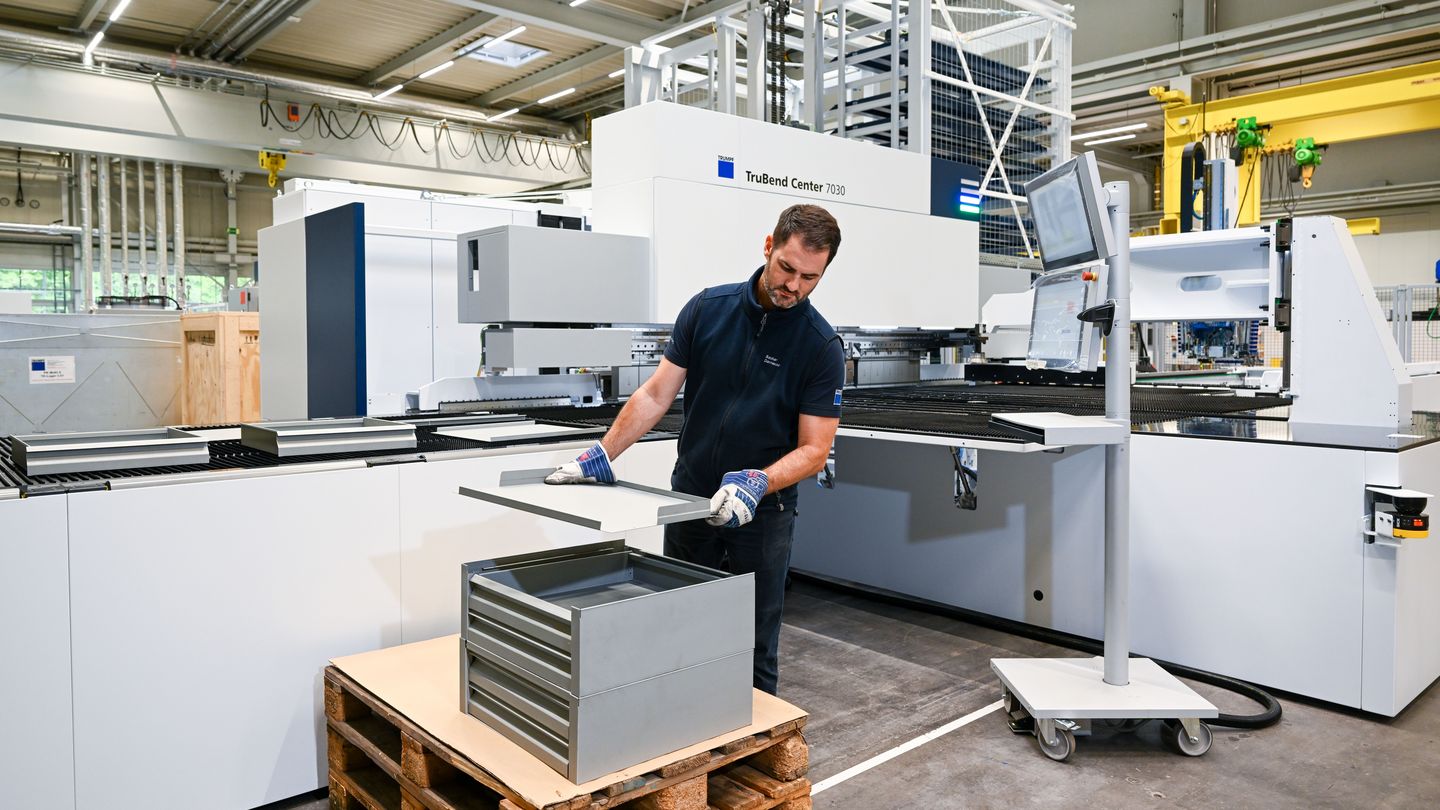 The interlinked solution from TRUMPF is networked via the OSEON software. This not only allows users to control the material flow flexibly but also gives them complete transparency over production. Even rush orders can be flexibly scheduled using the software. Since the interlinked solution consists of medium-format machines, it is also particularly compact. “Our solution gives companies the opportunity to automate their production piece by piece and expand it into a smart factory,” says Götz. The solution is particularly suitable for small and medium-sized companies that want to expand their production capacity. Due to its high flexibility, the solution is primarily aimed at product shops, particularly in the fields of elevator construction, refrigeration and air conditioning technology, switch cabinet construction, commercial kitchen construction, and shopfitting.