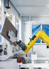 Ein Vakuum-Kombi-Greifer am Roboterarm ermöglicht das schnelle und sichere Be- und Entladen. Das Biegeprogramm lässt sich innerhalb weniger Sekunden mit der bewährten TRUMPF Software TecZone Bend erstellen. Anschließend kann der Mitarbeiter den Roboter mithilfe einer App auf dem Teach-Panel programmieren. So lässt sich die TruBend 7050 schnell und einfach einrichten. Mit einer automatischen Doppelblecherkennung erkennt die Flex Cell, ob Rohmaterial bei der Beladung zusammenklebt und schleust es gegebenenfalls aus. Das reduziert den Ausschuss und spart Ressourcen.