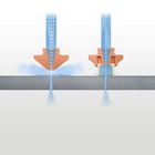 Beim Highspeed-Prozess kommt eine so genannte Nebenstromdüse zum Einsatz. Ein Teil des Schneidgases tritt durch die Düsenmitte gemeinsam mit dem Laserstrahl aus; der Rest bildet um den Hauptstrahl herum einen Nebenstrom. Dieser konzentriert den Hauptstrahl auf den Schnittspalt. Die Schmelze wird so effektiver ausgetrieben. Die patentierte Düse des Schneidprozesses Highspeed Eco ist zusätzlich mit einer Hülse ausgestattet. Sie führt das Gas direkt in den Schnittspalt und sorgt so dafür, dass kein oder nur ein geringer Anteil des Gases seitlich abströmt. Während die bewegliche Hülse bei der Bearbeitung über das Material gleitet, hat die Düse einen Abstand von 1,5 Millimetern zur Blechoberfläche. Dadurch überwindet sie mühelos Materialaufwürfe, die beim Einstechen entstehen können, was die Einstechzeiten reduziert und der Gefahr von Beschädigungen vorbeugt.