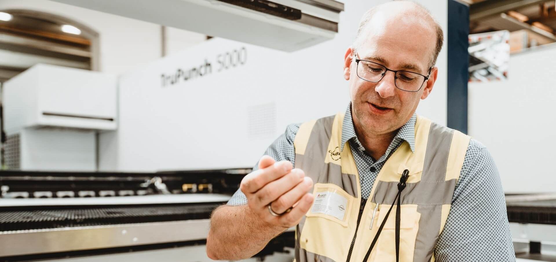 “We made several trips to Cimbria Heid to implement Cimbria's requirements,” says Peter Sternat, TRUMPF Sales Manager for Eastern Austria, "and Günther Schwarz also visited our Customer Center in Ditzingen.” Together, they integrated the TruPunch 5000 into the layout of the current machine fleet and developed the first tool heads for the drop mold. “We have made progress step by step,” says Sternat.