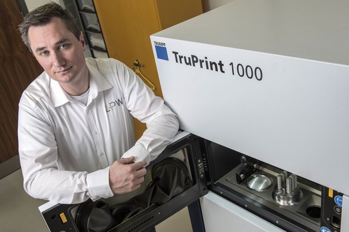 The TruPrint 5000 has not just one but three 500-watt fiber lasers that dance around in the process chamber on the powder bed and generate one or more components. In the professional world, this is called a multi-laser principle.
