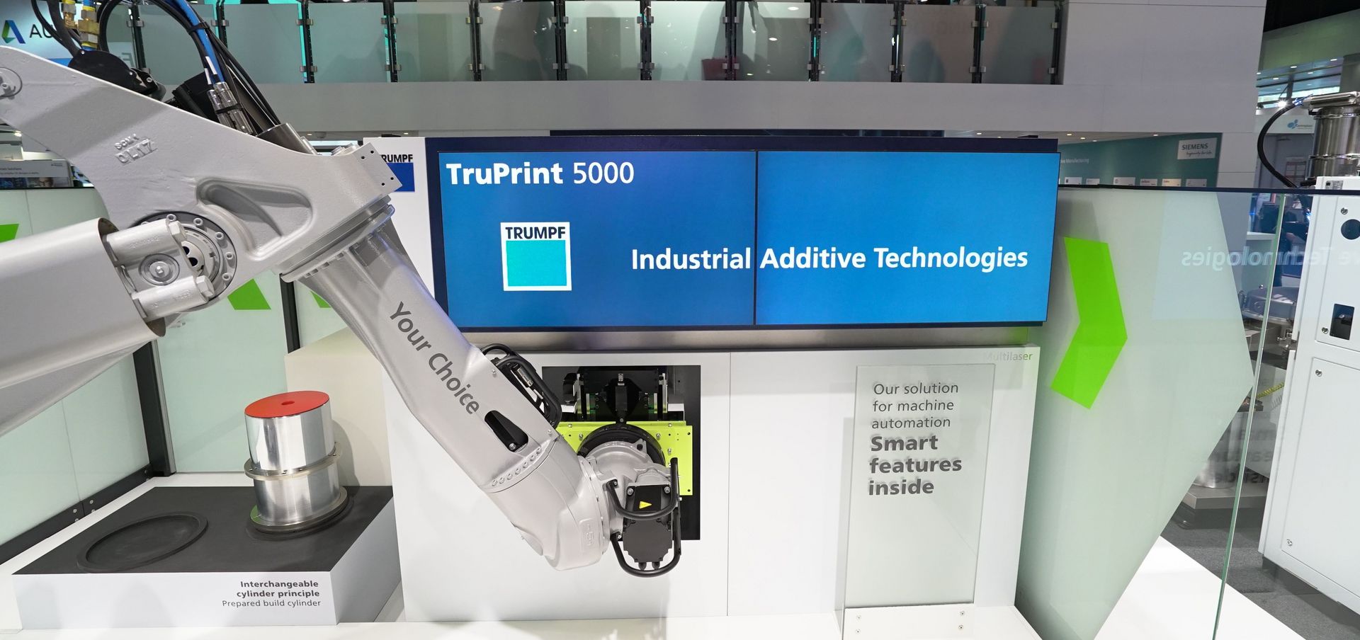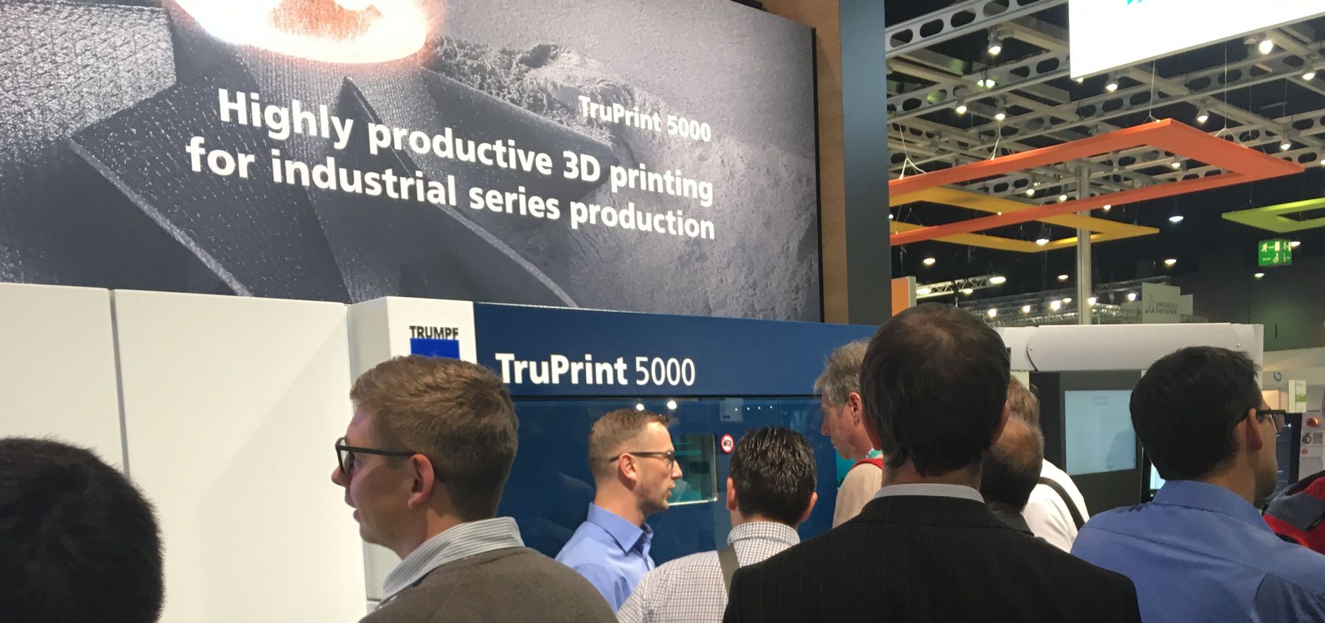 TRUMPF has exhibited its complete product and technology portfolio for additive manufacturing over more than 400 square meters. On board: The TruPrint 5000 - one, if not the fastest, 3D printing system in the world.